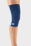 As espirais incorporadas lateralmente complementam o efeito terapêutico da joelheira elástica Genuaktiv. Graças às almofadas Comfort na fossa poplítea, esta joelheira é extremamente agradável de usar – mesmo com longos períodos sentado.